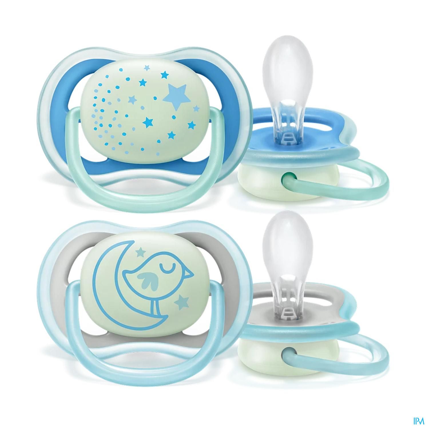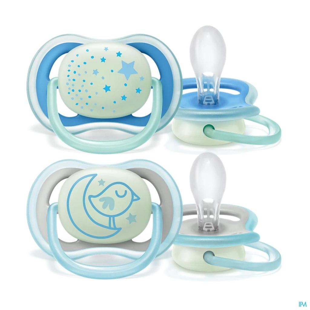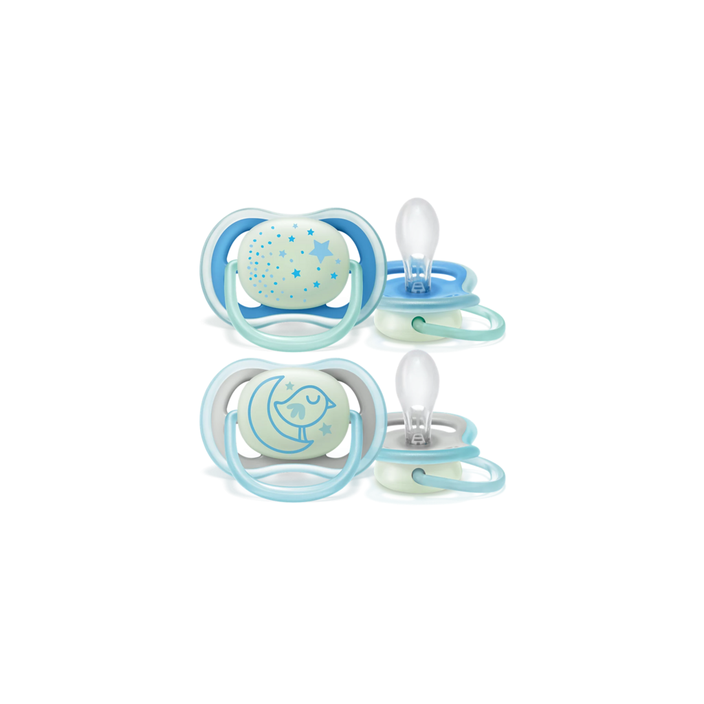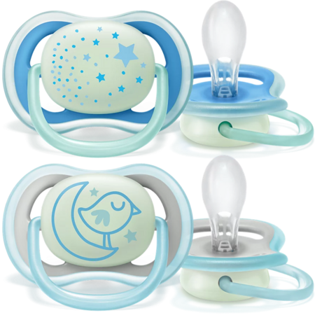 Kalmeer je baby met een fopspeen die de huid laat ademen en die 's nachts gemakkelijk te vinden is. De extra grote luchtgaatjes van de ultra air fopspeen voor 's nachts zorgen ervoor dat de gevoelige huid zacht en droog blijft. Het schildje dat oplicht in het donker vind je gemakkelijk terug als de lampen uit zijn