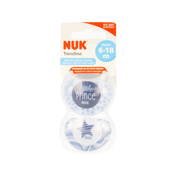 Met de afgeronde fopspenen van het gamma Trendline slaapt jouw baby makkelijk in zonder gehinderd te worden. Het gamma omvat ook fopspenen met een fluorescerende afronding die in het duister oplicht waardoor het kind of de ouders de fopspeen 's nachts makkelijk terugvinden.