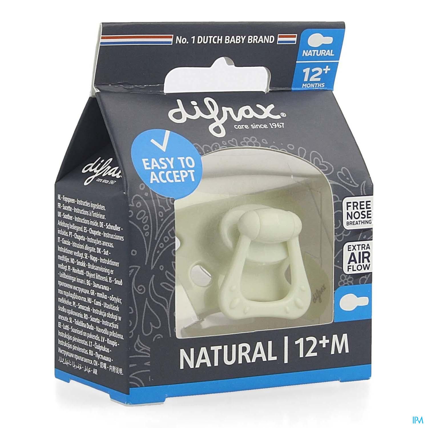 U kan difrax fopspeen natural 12m+ uni/pure assorti, , geleverd door difrax bestellen op Pharmacodel, uw online apotheek.