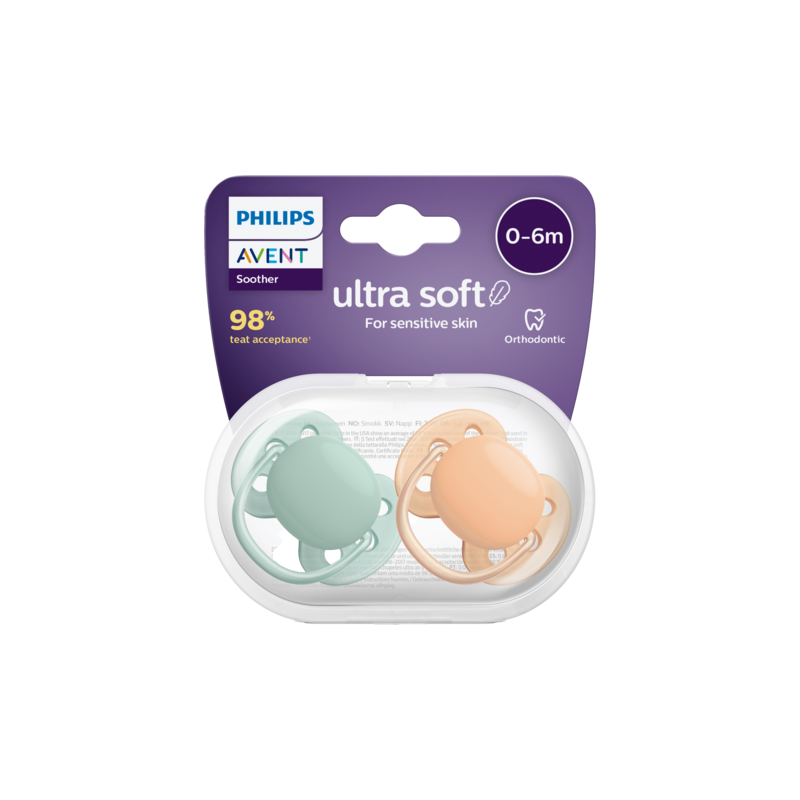 De Philips Avent ultra soft-fopspeen is ideaal voor de gevoelige huid. Het superzachte flexibele schildje volgt de rondingen van de wangen van je baby, voor minder huidvlekken, minder irritatie en meer comfort.