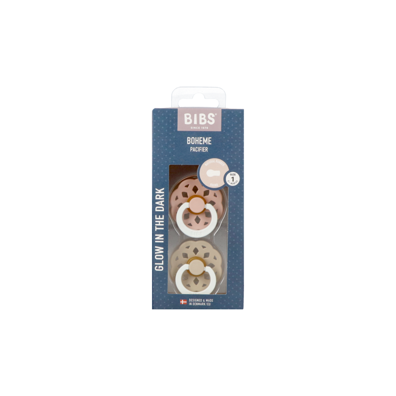 BIBS Boheme GLOW heeft dezelfde hoge kwaliteit als de originele BIBS fopspenen, maar heeft een praktische glow-functie.