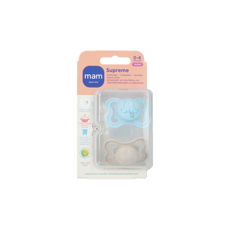 Het unieke MAM Supreme-speentje biedt de beste ondersteuning voor een gezonde mondontwikkeling en is daarnaast ook bijzonder huidvriendelijk.