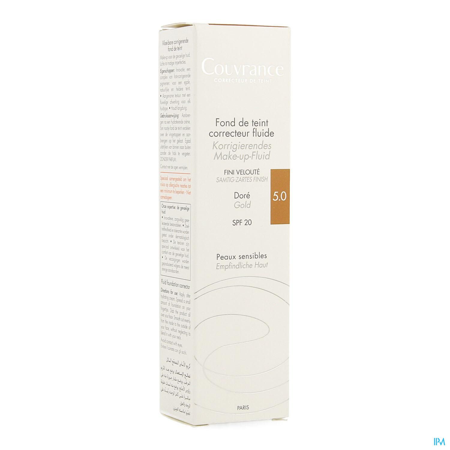 Couvrance Vloeibare Foundation doré is een getinte foundation die oneffenheden op de huid egaliseert, en voor een perfect natuurlijke, egale en stralende teint zorgt. Deze vloeibare foundation is bedoeld voor de lichte of matte, gevoelige huid. Dankzij het fotocorrigerende pigmentcomplex corrigeert en camoufleert hij op subtiele wijze lichte tot matige onvolkomenheden van de huid. Het biedt een SPF 20 UV-bescherming en bevat pre-tocoferyl om foto-geïnduceerde huidveroudering tegen te gaan. Water- en zweetbestendig.