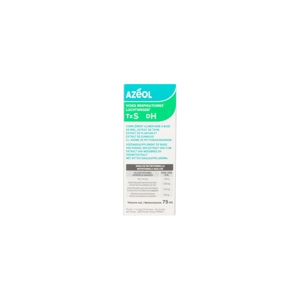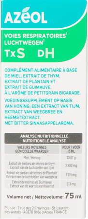 Voedingssupplement op basis van honing, tijm extract, weegbree-extract en heemstextract van de wortels met het aroma van petitgrain bigarade.