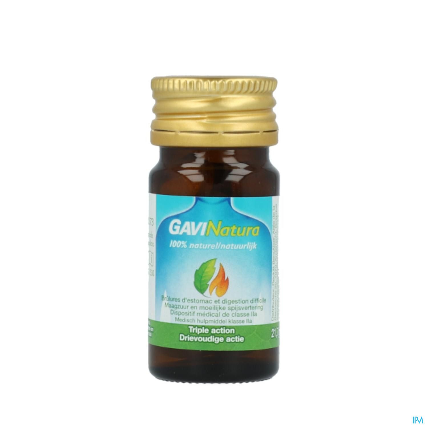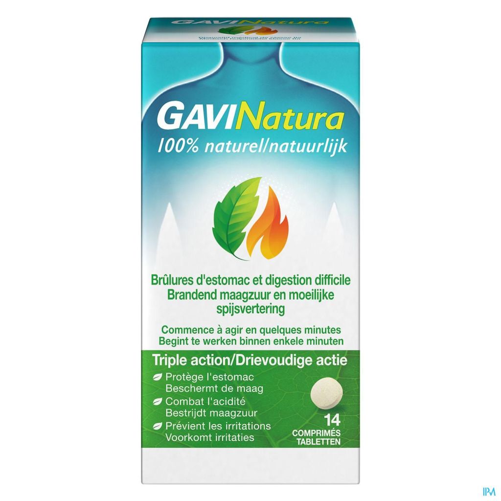 GaviNatura is een medisch hulpmiddel dat werkt door een beschermende film te creëren die het maag-oesofageale kanaal bekleedt, waardoor het contact met maagsappen en andere irriterende stoffen wordt verminderd.