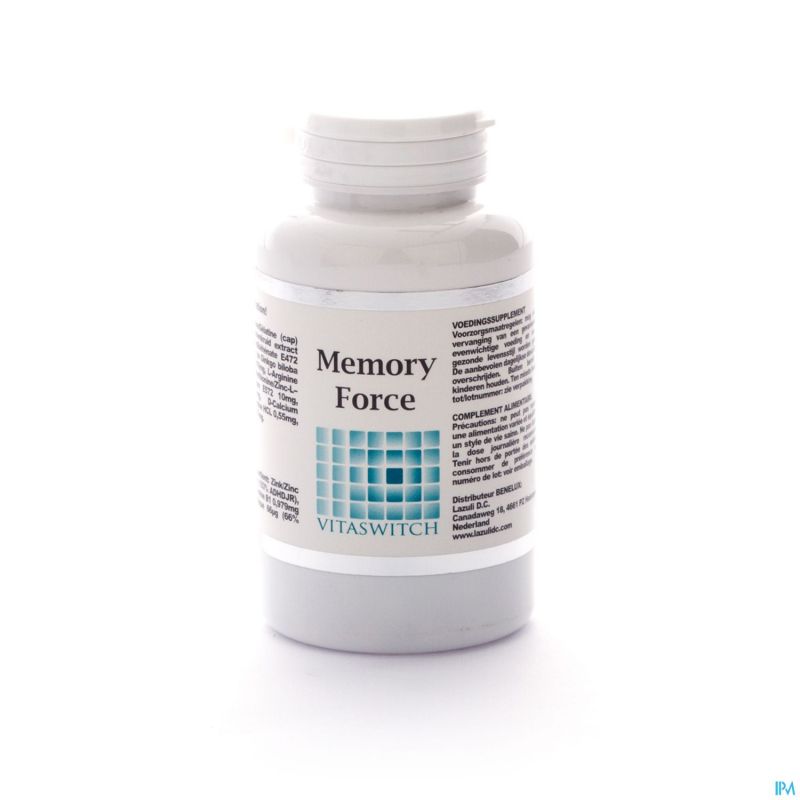 MemoryForce bevat choline, fosfatidylserine, zink, vitamine B3 en ginkgo biloba extract. Zink draagt bij tot een normale cognitieve functie. Niacine, riboflavine en cyanocobalamine dragen bij tot een normaal energieleverend metabolisme en tot de normale werking van het zenuwstelsel en dragen ook bij tot de vermindering van vermoeidheid en moeheid.