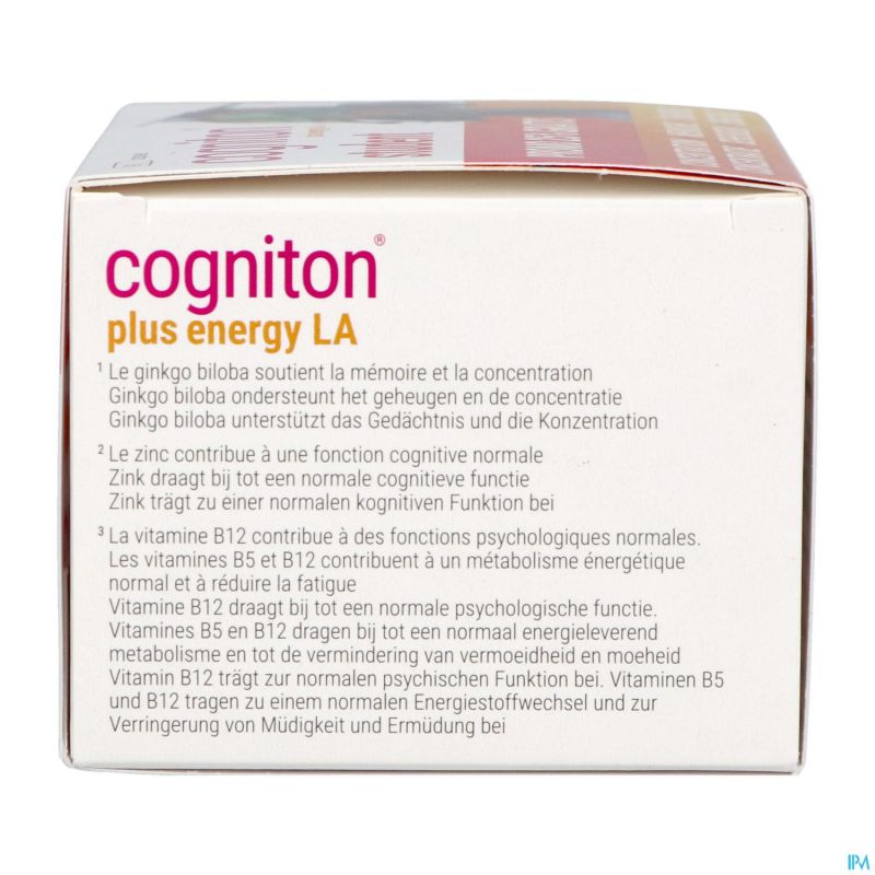 Cogniton plus energy LA is geschikt voor studenten en actieve mensen die hun concentratievermogen op peil willen houden om goed te presteren in tijden van stress en drukke schema's. Denk aan examens of een drukke periode op het werk. Daartoe zijn ingrediënten toegevoegd om de energie op peil te houden en vermoeidheid te helpen verminderen, waaronder vitamine B5 en B124. Dit product bevat ook Guarana.