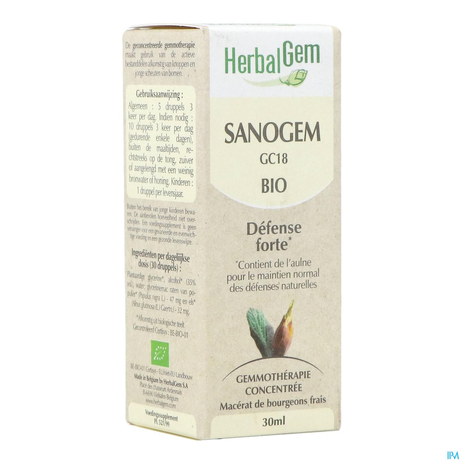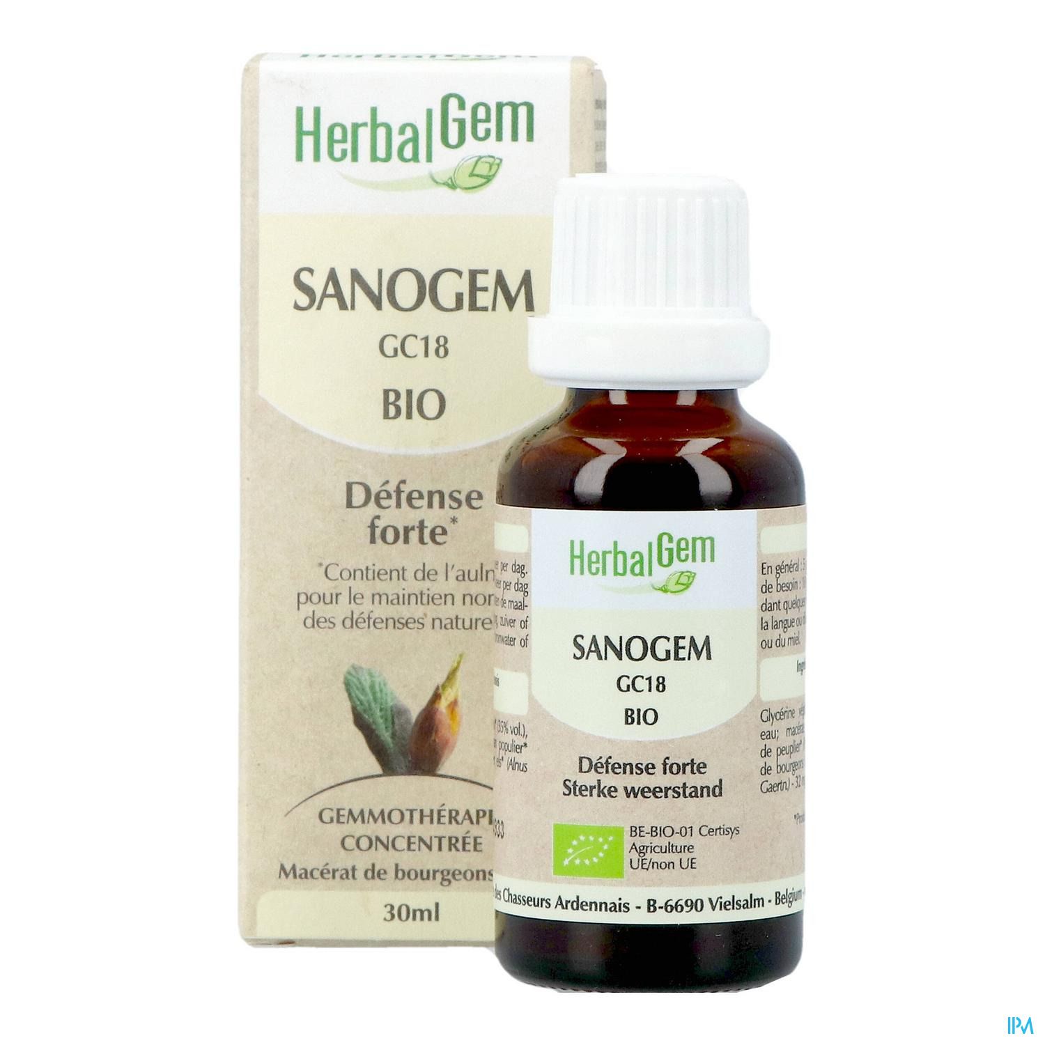 SANOGEM draagt bij tot het afremmen van de ontwikkeling van kiemen dankzij de combinatie van knoppenextracten van populier en els, de belangrijkste plantaardige bronnen van propolis. De bijen verzamelen voor de aanmaak van propolis bijna uitsluitend de harsen van de knoppen van populier en els omdat ze rijk zijn aan flavonoïden. Deze propolis heeft voor de bijen ondermeer een hygiënische functie door de aanmaak van een beschermingslaag tegen de aanvallen van microben of schimmels. Terwijl de populier in de oudheid beschouwd werd als een schild, is de els een robuuste boomsoort die bestand is tegen verrotting.