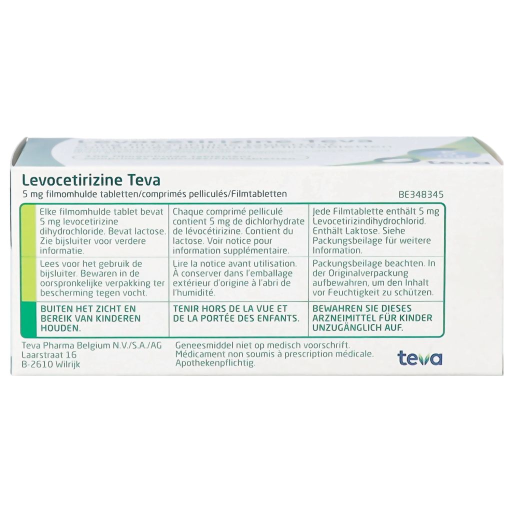 Levocetirizine Teva 5mg Filmomh Tabl 100 X 5mg is een geneesmiddel : Lees de bijsluiter zorgvuldig. Niet langdurig gebruiken zonder medisch advies.