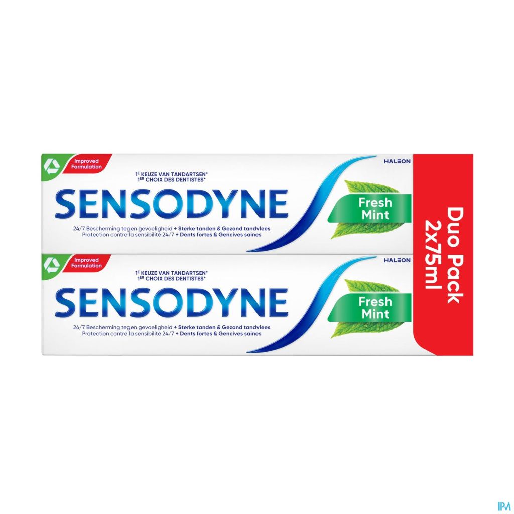 Sensodyne Fresh Mint is een tandpasta voor verlichting en dagelijkse bescherming bij gevoelige tanden. Bevat ook fluoride dat de tanden beschermt tegen cariës. Poets tweemaal daags met Sensodyne Fresh Mint tandpasta voor effectieve reiniging. Met een sterke pepermuntsmaak voor een schoon en verfrissend gevoel.