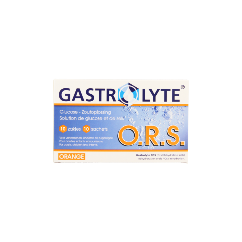 Gastrolyte O.R.S. Orange is een glucose-zoutoplossing. Het is een gemakkelijke instantbereiding met een aangename sinaasappelsmaak. Het is een O.R.S. (= Oral Rehydration Salts), ter ondersteuning van een goede vochtbalans.
