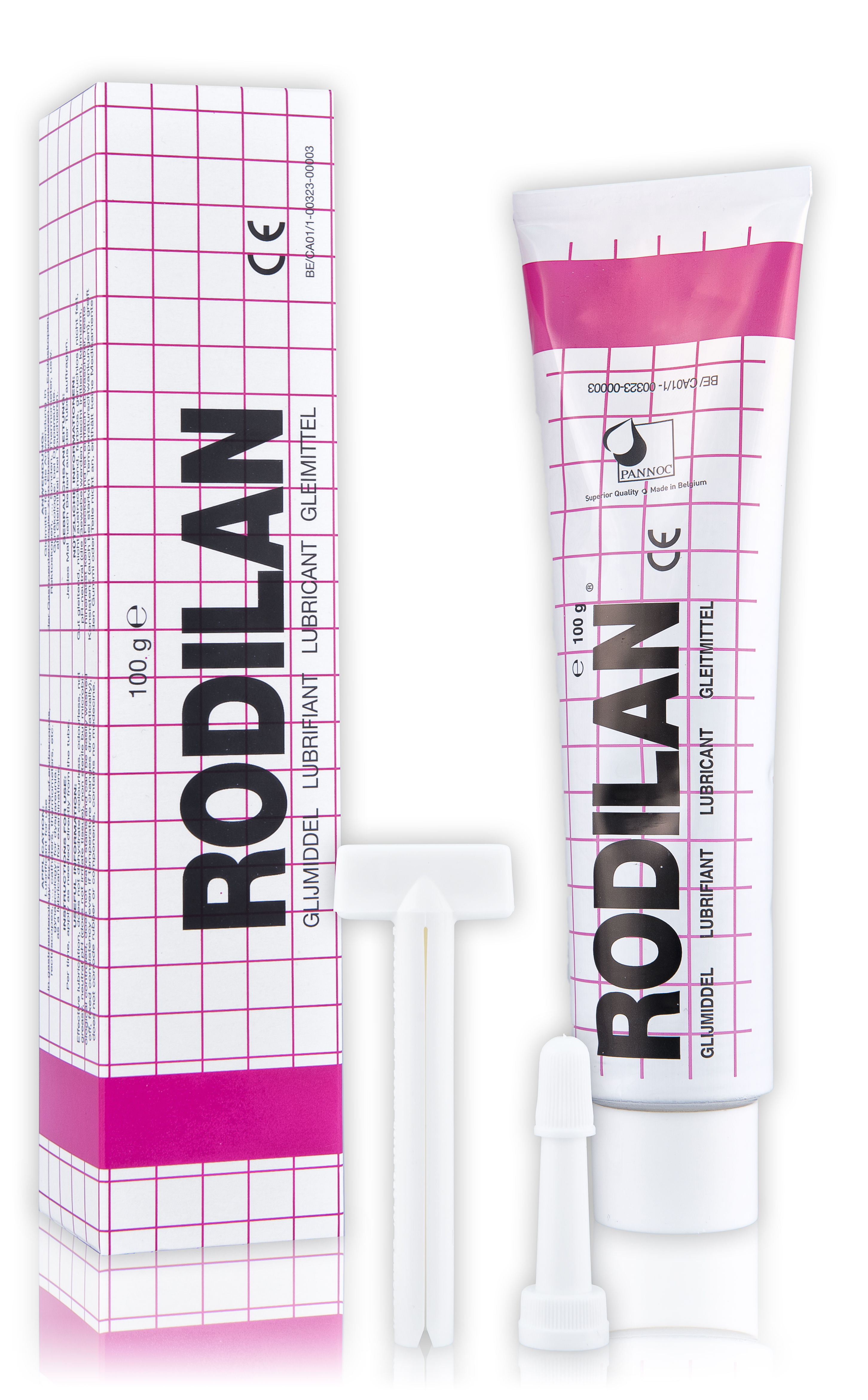 - voor het insmeren van endoscopen, rectoscopen, …, sondes, thermometers, etc.