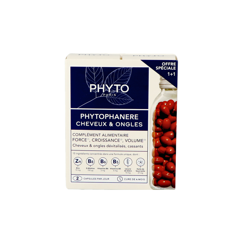 PHYTOPHANERE is een voedingssupplement samengesteld met vitaminen, oliën van natuurlijke oorsprong, plantenextracten en erkende mineralen, waaronder zink, om normaal haar en normale nagels te helpen behouden en te zorgen voor kracht en groei. Vitamine B6 draagt bij tot de normale synthese van cysteïne. Biotine (vitamine B8) helpt bij het behoud van normaal haar.