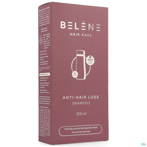 Belène® Anti-Hair Loss Shampoo met Active V Complex*, heeft een meervoudige activiteit bij dun, futloos haar en haarverlies: • Helpt haaruitval te voorkomen • Ondersteunt haarcyclus • Bevordert een gezonde hoofdhuid • Zorgt voor gezond en glanzend haar vanaf de wortels tot in de punten