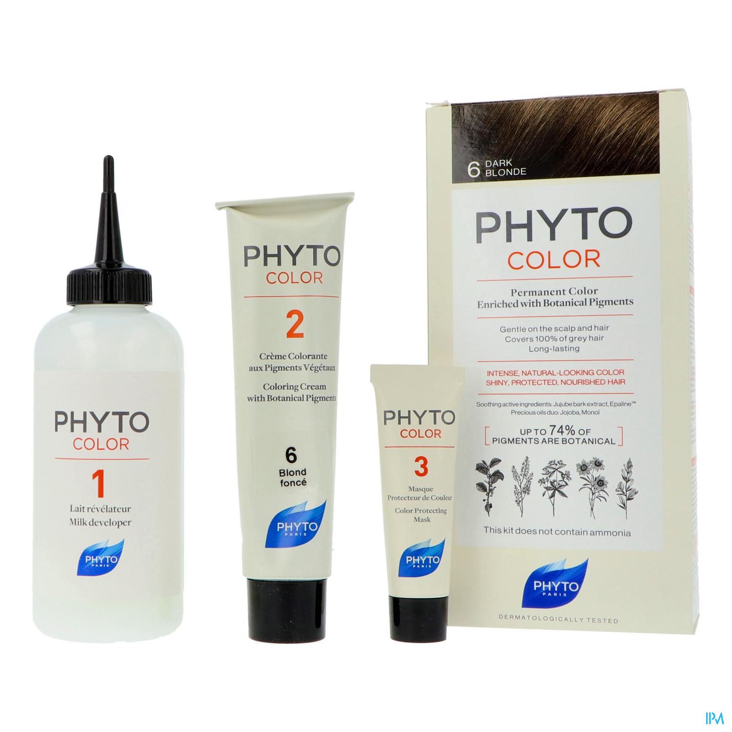 Een formule verrijkt met in Frankrijk geselecteerde en vervaardigde plantaardige pigmenten , afkomstig van vijf verfplanten voor natuurlijke en stralende highlights.