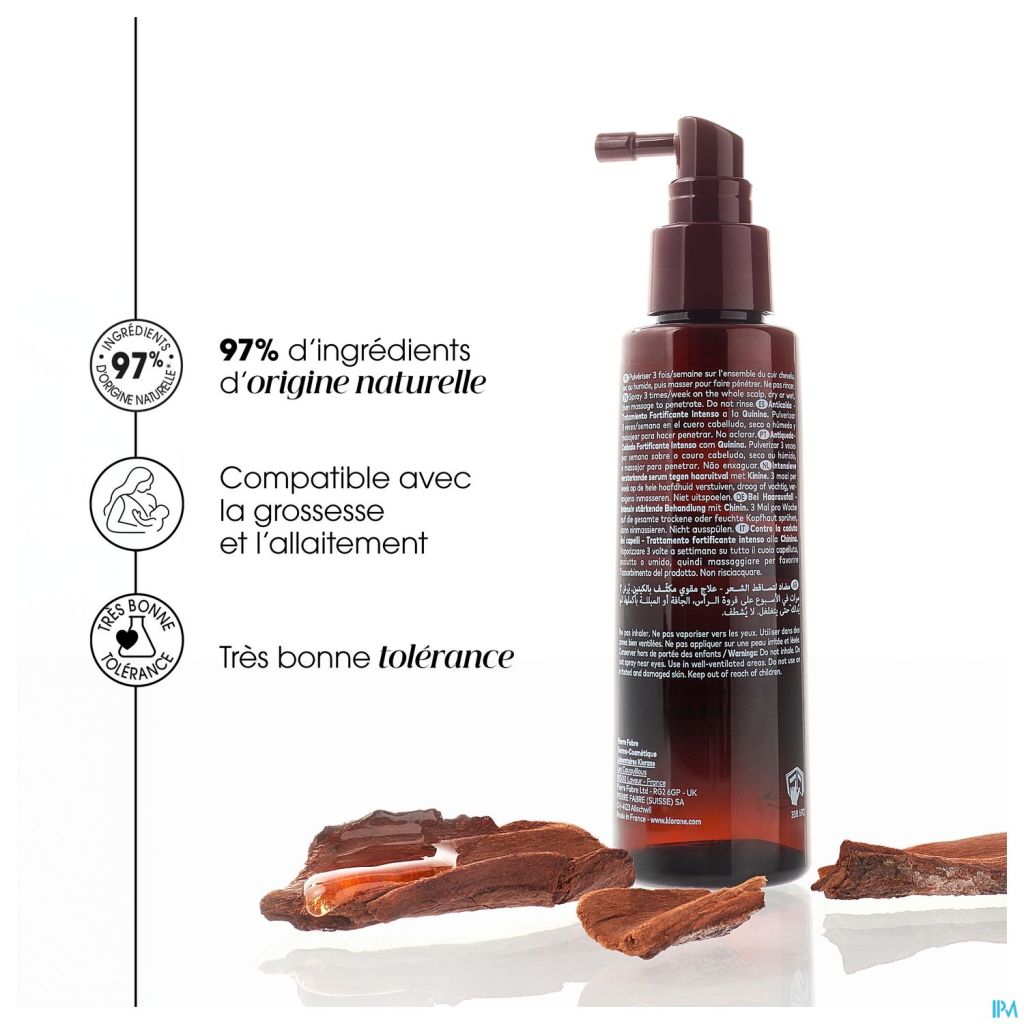 Haaruitval hoeft geen probleem te zijn: met de juiste anti-haaruitval verzorging kan het stressvrij worden aangepakt en verdere haaruitval worden voorkomen.. Het intens versterkend serum tegen haaruitval met Kinine uit medicinale Quinquina is een verzorging geschikt voor alle soorten haaruitval. Deze verzorging van natuurlijke* oorsprong is de doeltreffende oplossing om haaruitval met 67% te verminderen, het haar intens te versterken, de haargroei te stimuleren en het haar te beschermen tegen de schadelijke effecten van stress. Geformuleerd met 97% ingrediënten van natuurlijke oorsprong, waaronder Kinine en Cafeïne, die de haarverankering versterken en haaruitval vertragen; evanals Camu Camu, een supervrucht uit het Amazonegebied met een anti-stress effect***. Deze verzorging tegen haaruitval werkt vanaf 1 maand**** om haaruitval te vertragen, het haar zichtbaar sterker te maken en de groei ervan te stimuleren. Na 3 maanden***** is het haar voller, sterker en heeft het meer volume.