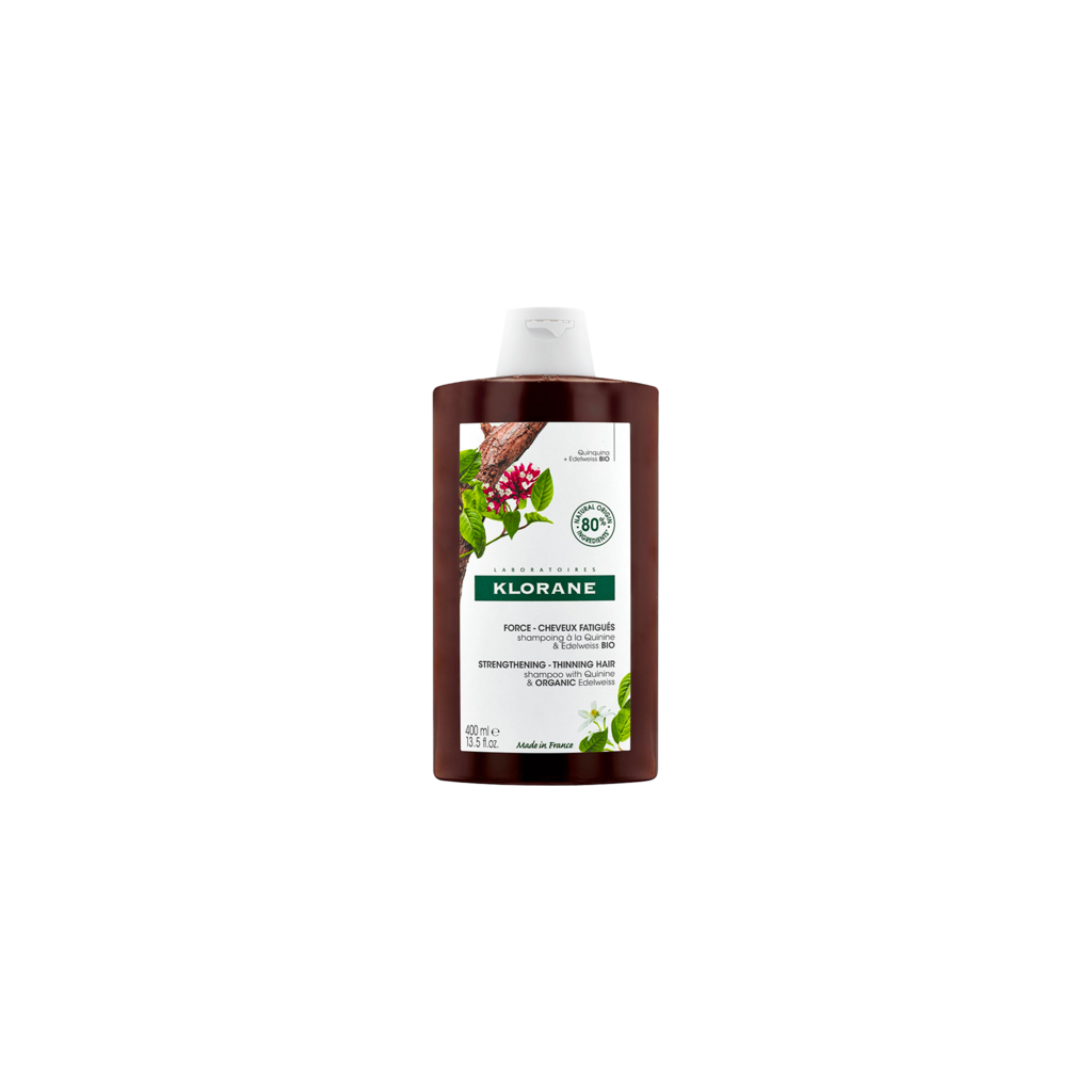 De versterkende en stimulerende anti-haaruitval shampoo met Kinine, afkomstig van de medicinale Kinabast van Klorane, biedt een echte oplossing om haaruitval te vertragen en vermoeid haar te revitaliseren. De synergie van Kinine en Cafeïne vermindert haaruitval en versterkt de verankering van het haar, terwijl biologische Edelweiss, Mangaan en Kinine hun groei stimuleren. De sulfaatvrije formule wast het haar mild en beschermt het tegen beschadiging en kwetsbaarheid. Hierdoor wordt de haaruitval met 60% vertraagd*, is het haar minder breekbaar en wordt het sterker.