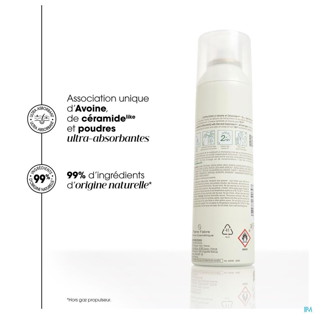 De Droogshampoo met Haver en Ceramideᴸᴵᴷᴱ van Klorane is speciaal ontworpen om het haar te kunnen wassen zonder water. De nieuwe, 100% onzichtbare formule combineert verzachtend extract van Haver en beschermende Ceramideᴸᴵᴷᴱ met ultra-absorberende poedersoorten om het haar in slechts 2 minuten tijd te reinigen, te beschermen en te revitaliseren, en dat wel 12uur lang*. De ideale oplossing om het haar te verfrissen en luchtig te laten aanvoelen. Gegarandeerd residu-vrij. Geschikt voor het haar van mannen en vrouwen. *Consumententest, 66 personen na 21 dagen