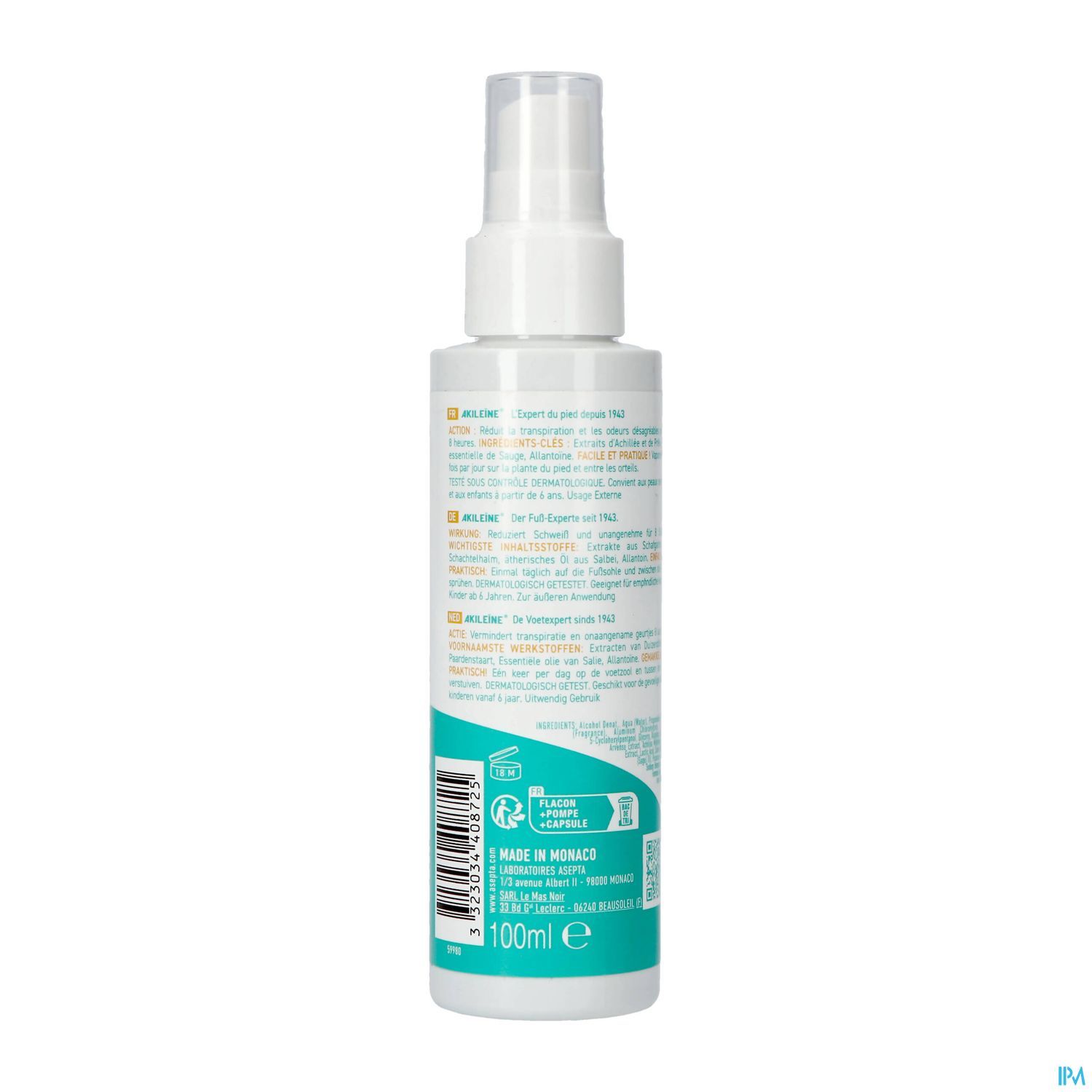 De Vaporisateur Déo Anti-Transpirant AKILEINE ontgeurt effectief en absorbeert onaangename geurtjes.