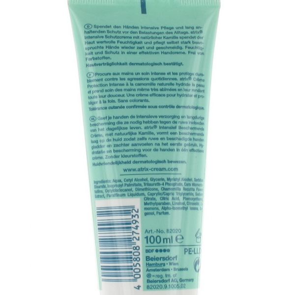 De Intensief Beschermende handcrème van Atrix® zorgt voor een intensieve verzorging en een langdurige bescherming die je handen nodig hebben om de zware impact van het dagelijks leven tegen te gaan. De Intensief Beschermende handcrème van Atrix®, met natuurlijke Kamille, vormt een beschermende laag op de huid, dus zelfs ruwe en gekloofde handen voelen gladder en zachter bij de eerste applicatie. Gehydrateerde en beschermde handen in een crème.