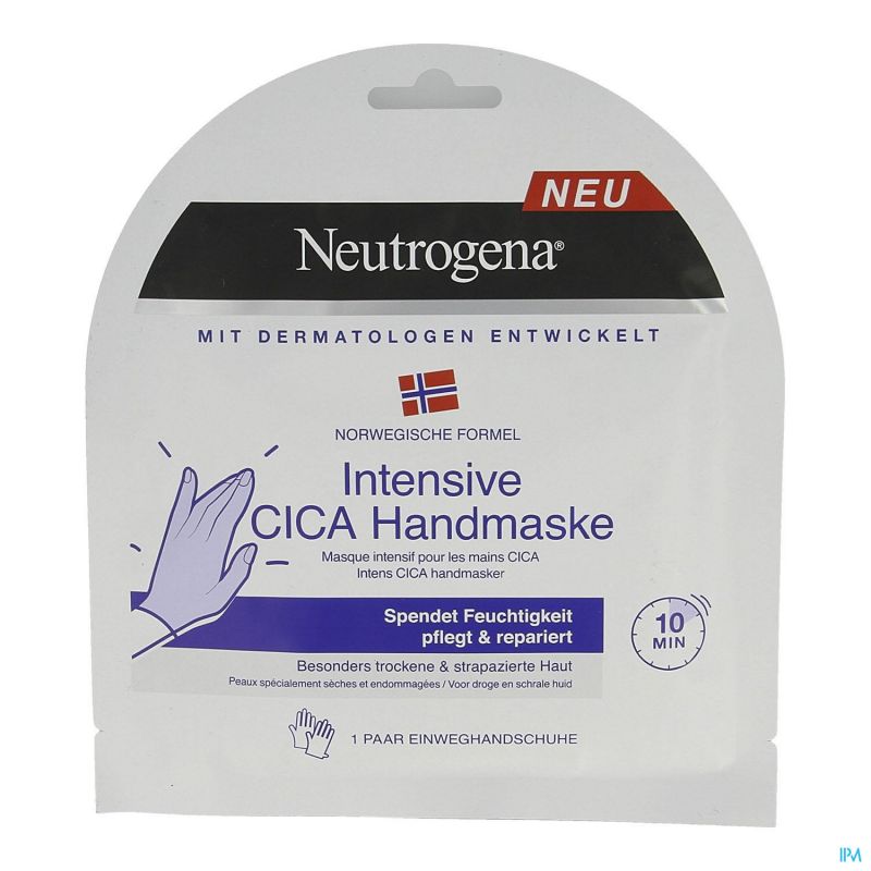 Huidtype: Formule met hoge tolerantie. Geschikt voor de gevoelige huid. Voordelen voor de patient: Hydrateert, verzorgt en helpt te herstellen. Voor droge en schrale huid. Voordelen van het product (eigenschappen): Verzorg uw handen met het nieuwe Neutrogena Intense CICA handmasker. Wetenschappelijk bewezen vanaf het eerste gebruik, het masker werkt als een kalmerend 'vochtverband', dat direct de zeer droge en schrale huid helpt te herstellen en verzorgen - 48 uur lang.