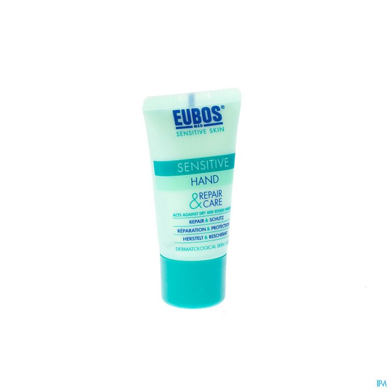 De speciale formule voor zachte en gladde handen regeneert en beschermt de natuurlijke biosfeer van de huid. Droge, ruwe handen worden weer zichtbaar zacht en soepel. De actieve werkstoffen beschermen tegen schadelijke invloeden van buiten af en voorkomen een droge en ruwe huid. Een dagelijkse verzorging van uw handen met Eubos Sensitive hand repair & care zorgt voor goed verzorgde, fluweelzachte handen.