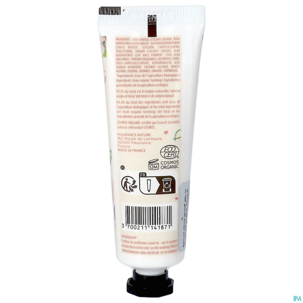 INGREDIËNTEN : AQUA (WATER), CETEARYL ALCOHOL, ROSA DAMASCENA BLOEMENWATER*, BUTYROSPERMUM PARKII (SHEA) BOTER*, GLYCERINE, CAPRYLIC/CAPRIC TRIGLYCERIDE, SODIUM CETEARYL SULFAAT, ALOE BARBADENSIS LEAF JUICE POWDER*, CERA ALBA (BIJENWAS)*, PARFUM, DICAPRYLYLETHER, COCOCAPRYLAAT/-CAPRAAT, DEHYDROAZIJNZUUR, NATRIUMHYDROXIDE, KOKOSALCOHOL, BENZYLALCOHOL, EUGENOL, GERANIOL, LINALOOL, CITRONELLOL.