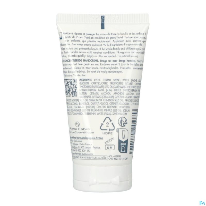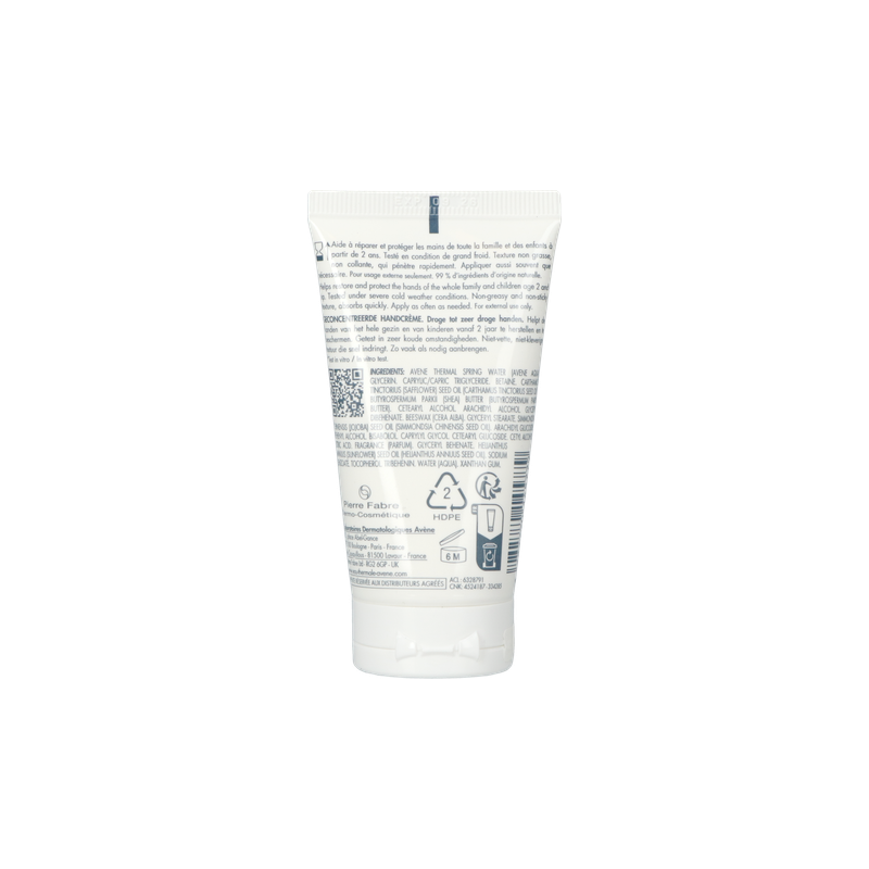 Deze voedende handcrème is getest in extreme koude weersomstandigheden, heeft een omhullende textuur en is licht geparfumeerd. De handen voelen zacht, niet-vettig noch plakkerig aan. Dankzij de Eau Thermale Avène Cold Cream, een traditioneel mengsel van ingrediënten uit de Franse farmacopee, voedt en verzacht deze crème de handen en beschermt het ze tegen koude en droogte. De rijke textuur laat zich makkelijk verdelen en wordt in een mum van tijd door de huid opgenomen. Het biedt 24 uur* lang hydratatie, waarbij de actieve bestanddelen geleidelijk aan en zeer doeltreffend inwerken. De handen voelen weer soepel een bijzonder comfortabel aan.