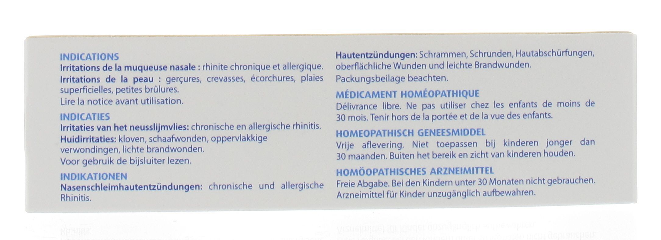 - Irritaties van het neusslijmvlies: een hoeveelheid ter grootte van een erwt aanbrengen in elk neusgat, 's morgens en 's avonds.