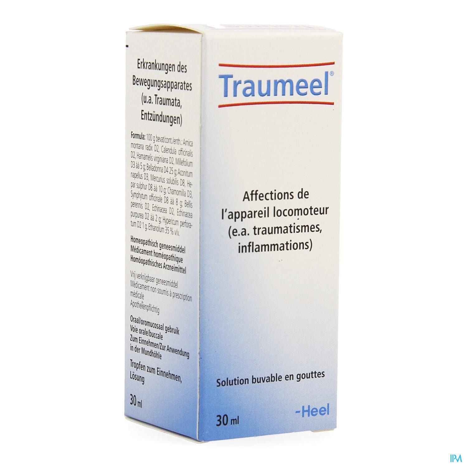Traumeel is een homeopathisch geneesmiddel met bestanddelen traditioneel gebruikt bij aandoeningen van het bewegingsapparaat, met inbegrip van de ondersteunende behandeling van milde of matige trauma's, milde pijn en ontsteking van spieren en gewrichten.