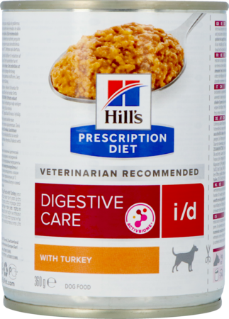Hill's Prescription Diet i/d Hondenvoer met Kalkoen is een goed verteerbaar, volledig dieetvoeder voor de vermindering van intestinale absorptiestoornissen, voor de compensatie voor een slechte spijsvertering en voor exocriene pancreasinsufficiëntie bij honden. Dit voeder bevat meer natrium en kalium en goed verteerbare ingrediënten.