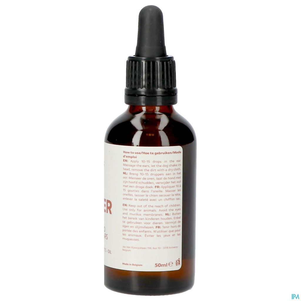 Breng 10-15 druppels aan in het oor. Masseer de oren, laat de hond met zijn hoofd schudden, verwijder het vuil met een droge doek.