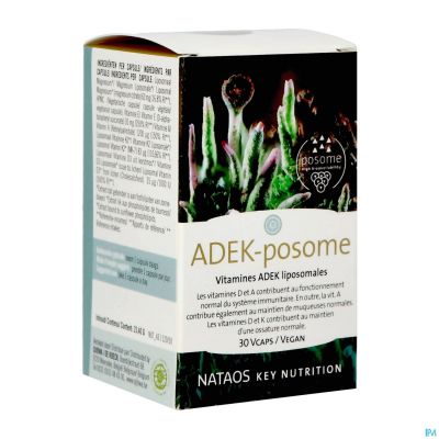 ADEK-posome is een bijzonder liposomaal complex. De liposomale vorm zorgt voor een optimale opname van de vitaminen A1, D2, E, K4 en bevat daarnaast ook magnesium om het fysiologische effect van de nutriënten te optimaliseren. Deze 4 vitamines werken synergetisch samen. Maar om deze synergiën efficiënt te laten plaatsvinden, is het noodzakelijk om een voldoende bijdrage van elk te garanderen. Vandaar is het interessant om te kiezen voor een oplossing die de vier combineert, in goede kwantiteit en in uitstekende kwaliteit en opneembaarheid! Zo kiest ADEK-posome van Nataos voor zuivere vormen en gebruikt het de actieve vorm van D3 en K2 boven de minder opneembare D2 en K1. Bovendien is er gekozen voor vitamine D3 uit korstmos en niet uit wolvet (lanoline), dus volledig vegan.