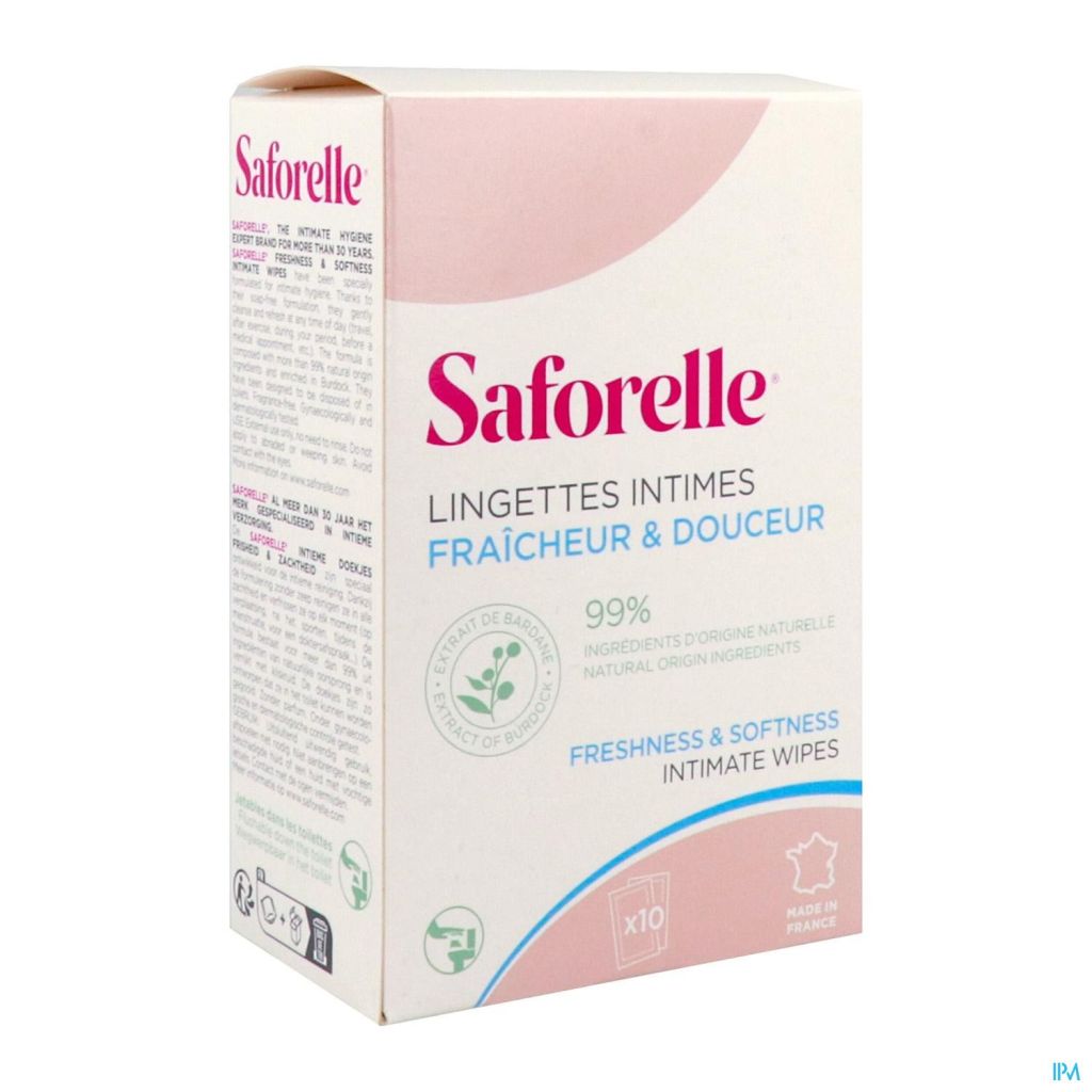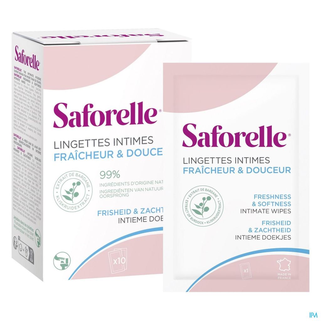 En déplacement, avant un rendez-vous médical, pendant les règles ou après le sport, les Lingettes Intimes pour femmeSaforelle nettoient en douceur et rafraîchissent la zone intime à tout moment de la journée.