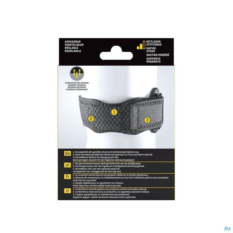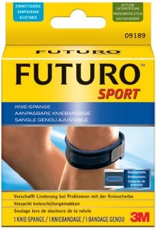 Een rennersknie vraagt om de serieuze ondersteuning van de FUTURO™ Aanpasbare Kniebandage. Dankzij een verstevigd gelkussen biedt deze kniebandage comfortabele, aan te passen druk op uw geblesseerde pees, zodat u weer de loopband of de weg op kan. Met de FUTURO™ Aanpasbare Kniebandage bent u verzekerd van betrouwbare versterking en bent u snel weer op pad.