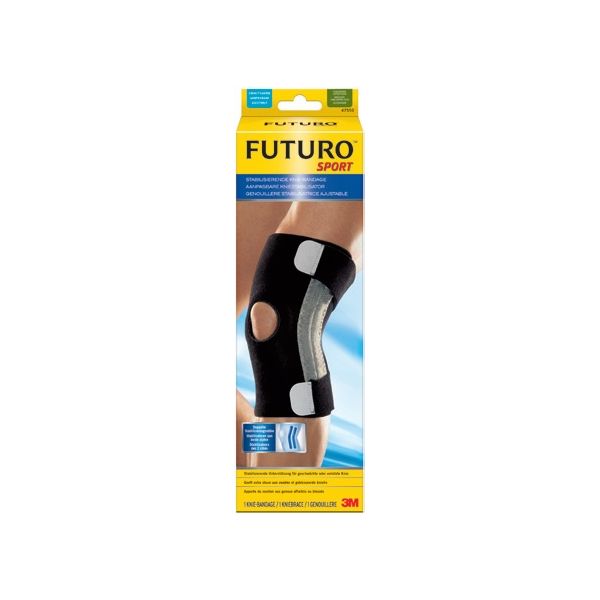 Breng the FUTURO™ Sport Aanpasbare Kniestabilisator aan en win dat beetje extra steun nodig om uw knie te stabiliseren en zo in topconditie te blijven. Bevestig deze steungevende kniebrace met de riempjes en beweeg actief.