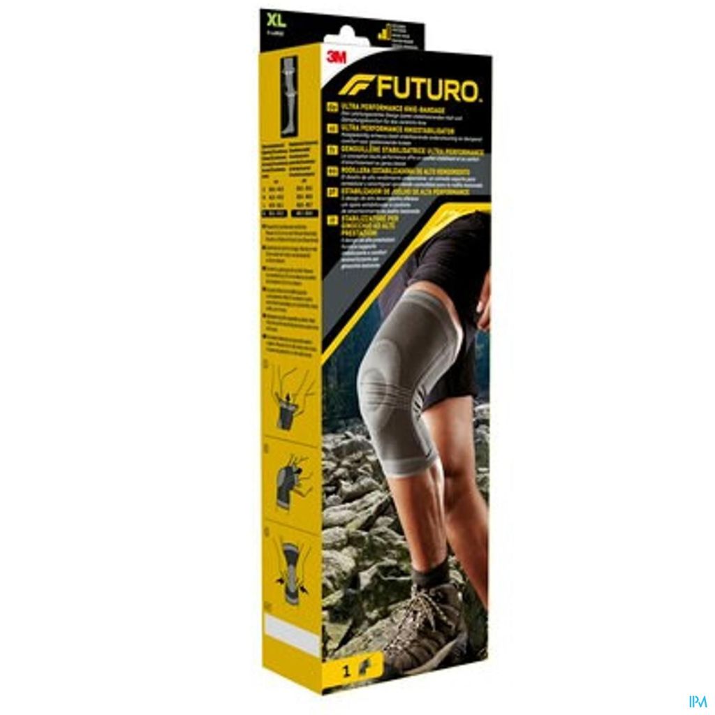 De FUTURO™ Ultra Performance kniestabilisator is ontworpen om uw geblesseerde knie te ondersteunen met matige stabiliserende steun. Deze comfortabele kniebrace is gemaakt van gebreide stof die in vier richtingen rekbaar is en heeft een gelring die uw knieschijf omsluit. Hij zorgt voor gerichte compressie rond uw blessure. Laterale stabilisatoren bieden extra steun en de siliconen afwerking zorgt voor een blijvende pasvorm, zelfs tijdens intensieve trainingen. Ademende eigenschappen laten zweet ontsnappen en het gestroomlijnde ontwerp is comfortabel om de hele dag te dragen. Kies dus voor de FUTURO™ Ultra Performance kniestabilisator en blijf actief.