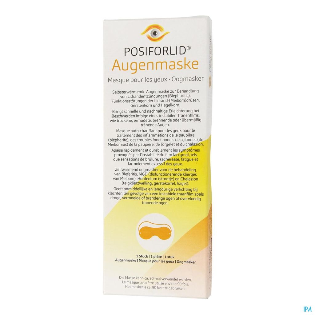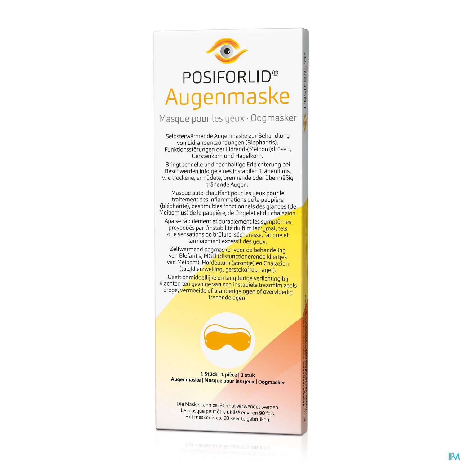 Een van de belangrijkste problemen in geval van ontstoken oogleden is het hard worden van de afscheiding van de Meiboom klieren. Door het verwarmen wordt de afscheiding vloeibaarder en kunnen de ooglidranden beter bevloeid worden. Dit is dan ook zeer belangrijk voor het herstellen van het functioneren van de Meiboom klieren. Een behandeling door middel van verwarming is echter uitsluitend efficiënt in een warme en vochtige omgeving bij een constante temperatuur van ca. 45 graden, gedurende 5 tot 7 minuten. Het zelfverwarmende oogmasker POSIFORLID® voldoet aan deze speciale voorwaarden en kan ca. 90 keer hergebruikt worden.