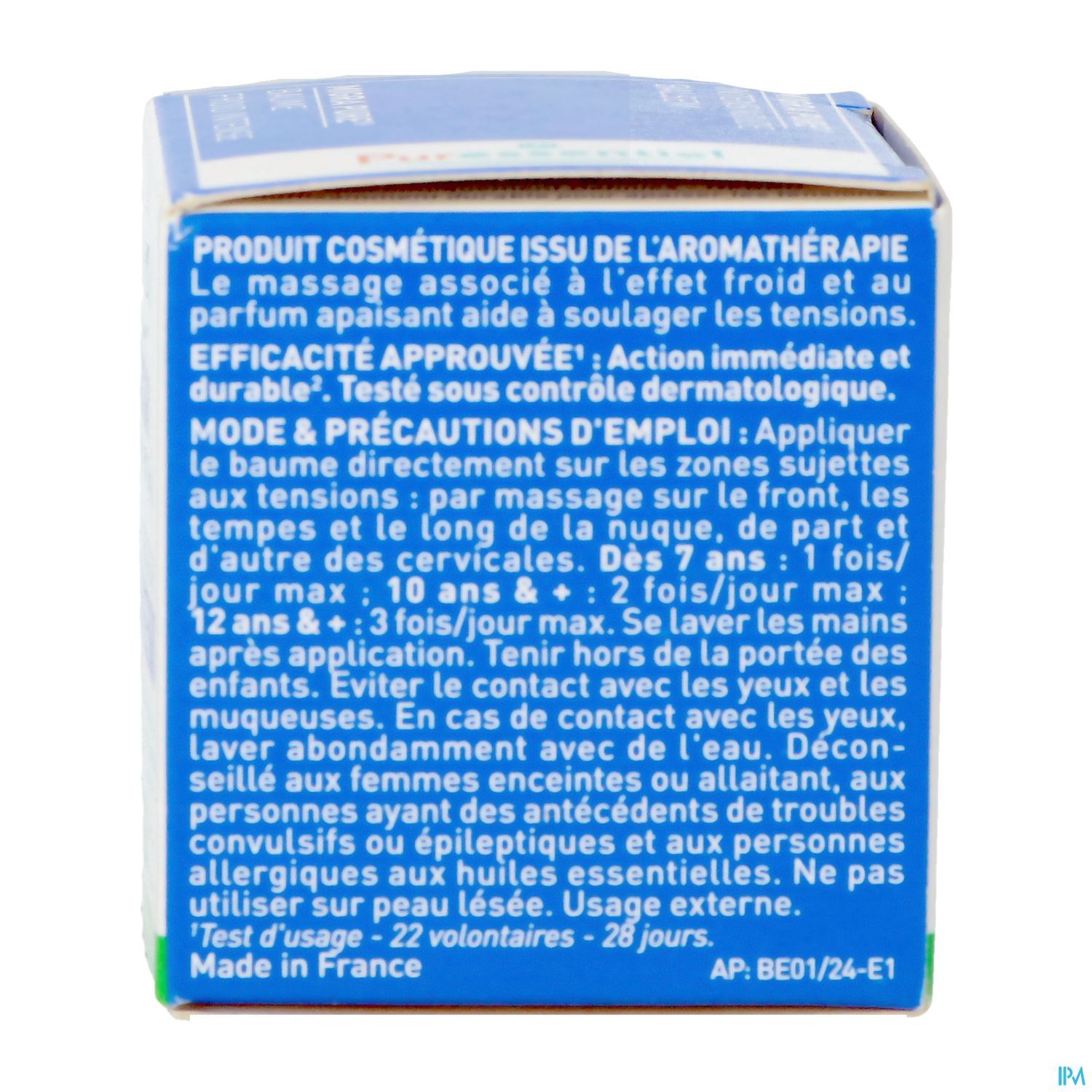 Met een frisse, ontspannende en rustgevende geur zorgt deze balsem voor een echt moment van ontspanning en is dankzij zijn zeer goede tolerantie geschikt voor de gevoelige huid. De formule combineert essentiële oliën, waaronder BIOLOGISCHE pepermunt en BIOLOGISCHE bolvormige eucalyptus, bekend om hun verfrissende eigenschappen. Biologische menthol versterkt dit intense verfrissende effect, voor een snelle en effectieve werking.