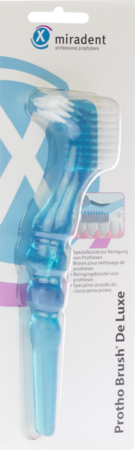 Heb je moeite met het reinigen van je kunstgebit? De Protho Brush Deluxe van Miradent is een prothese borstel met ergonomisch gevormde handgreep. Voedselresten, bacteriën en aanslag hechten zich snel aan protheses. Daardoor kunnen plak en tandvleesaandoeningen optreden en kan het kaakbot beschadigd raken.