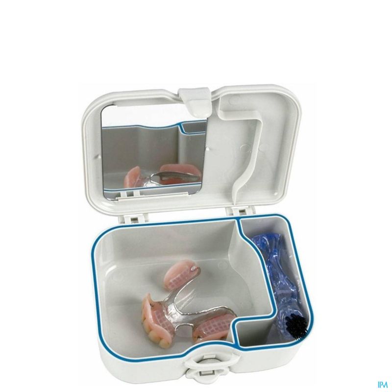 De Protho Box van Miradent is een handig opbergdoosje van stevig plastic voor je kunstgebit of beugel. Het praktische is dat de box volledig waterdicht is. Daardoor kan het kunstgebit of beugel in een reinigingsvloeistof worden bewaard, zonder lekken. Hierbij vind je een ergonomisch gevormde mini-protheseborstel (ook los verkrijgbaar). Met de witte borstel kan de buitenkant van de prothese worden schoongemaakt en met de zwarte borstel kan de binnenkant worden gereinigd.