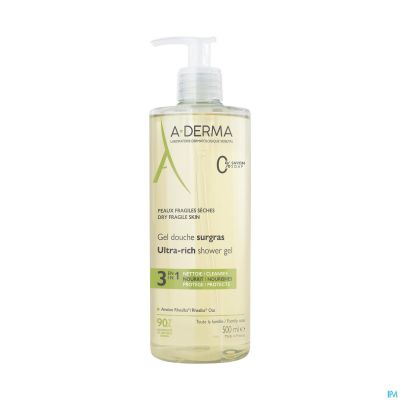 Het dermatologische laboratorium A-DERMA, expert in de hygiëne van de kwetsbare huid, speelt met deze douchegel tegemoet in op wat de droge huid nodig heeft. Deze reinigende verzorging, gemaakt met 90% natuurlijke ingrediënten, reinigt, voedt en beschermt mild. Verrijkt met weekmakende bestanddelen van natuurlijke oorsprong, ontleent het zijn doeltreffendheid en kalmerende en relipiderende eigenschappen aan de innovatie Clean Care Complex™. Deze combinatie bevat een zachte reinigende basis en een compenserend middel, om te reinigen zonder agressief of uitdrogend te werken. De smeltende formule met verzachtend Rhealba® haverplantextract verzacht de huid. Biologisch afbreekbaar.*De Overvette Douchegel zonder zeep is geschikt voor het hele gezin en kan op het gezicht en lichaam worden aangebracht. Onder de douche verandert het in een luchtig schuim met een lichte geur dat gemakkelijk afspoelt. De droge huid wordt gevoed, gekalmeerd en beschermd Rhealba® Haver van biologische teelt. Vegan info: zonder ingrediënten van dierlijke oorsprong.