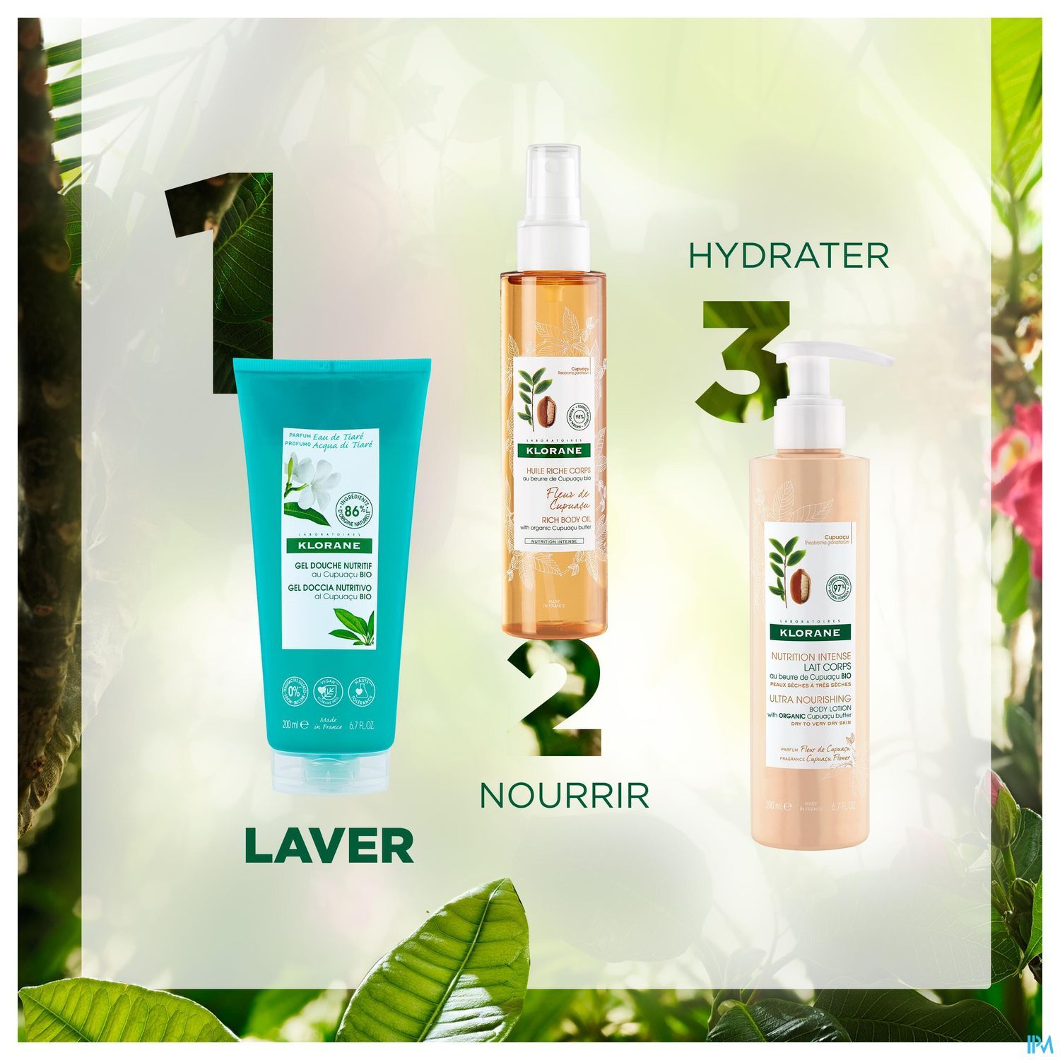De Douchegel met Tiaréwater van Klorane is speciaal ontwikkeld om alle huidtypes te reinigen zonder deze uit te drogen. De formule is rijk aan vetzuren en biologische Cupuaçuboter en hydrateert* de opperhuid en respecteert het evenwicht ervan. De geltextuur vormt een licht schuim onder de douche, maakt de huid proper en laat haar soepel en aangenaam geparfumeerd achter. Biologisch afbreekbaar** en veganistisch***, het is verpakt in een praktische tube met een ecologisch ontworpen dop: platter en met 40% minder plastic vormgegeven.* Gehydrateerde huid 90% tevredenheid - tevredenheidstest bij 86 personen gedurende 10 dagen.** Volgens OECD301B-norm.***bevat geen ingrediënten van dierlijke oorsprong.