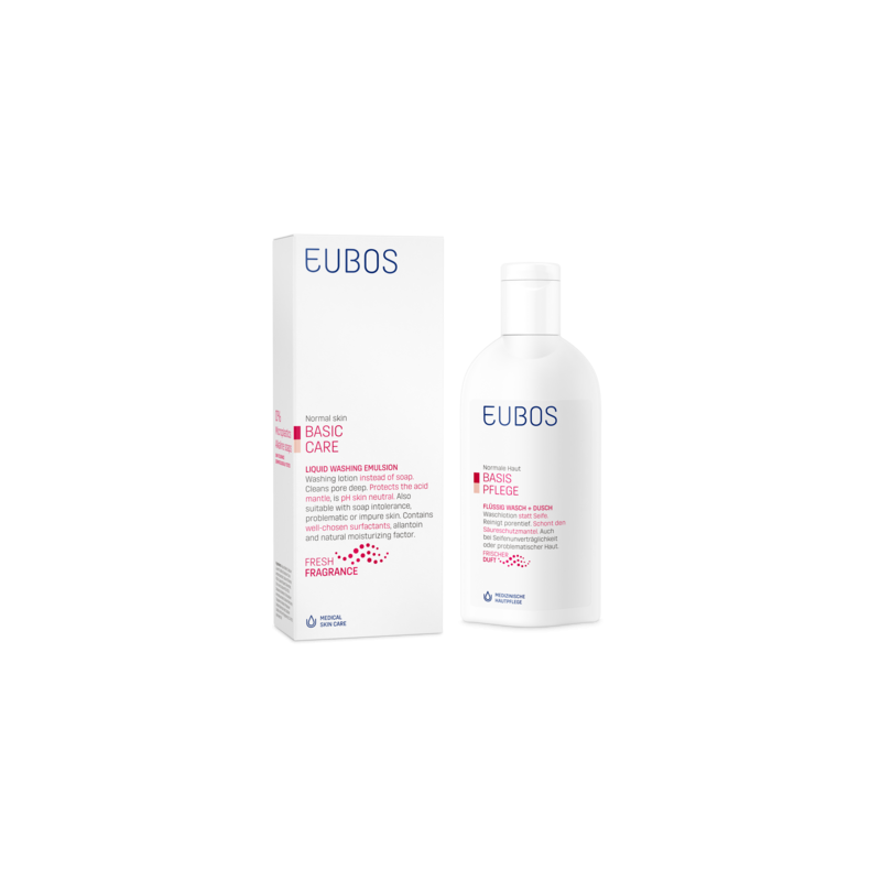 De reinigende actieve bestanddelen van EUBOS LIQUID bestaan uit de zachte combinatie laurylethersulfaat en amfo-acetaat van 6%. Uit fysiologische tests is gebleken dat dit product de lichaamshuid op een grondige manier reinigt zonder haar zachtheid aan te tasten. De huideigen hydraterende stoffen (Na-PCA = natriumpidolaat) en de allantoïne helpen bovendien huiduitdroging of -irritatie voorkomen.