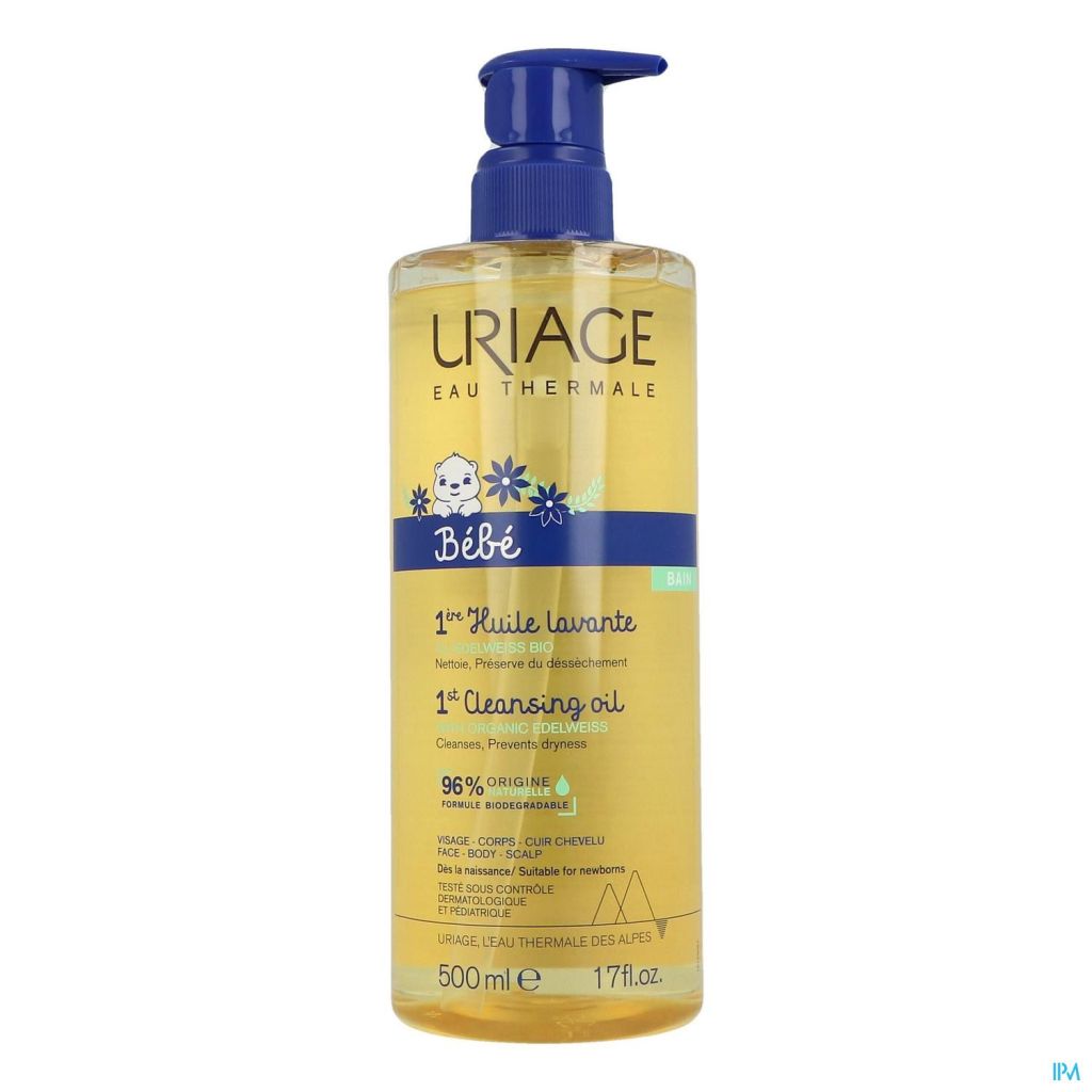 Deze romige, heerlijk geparfumeerde reinigingsolie met Thermaal Water van Uriage reinigt uw baby's huidje in alle zachtheid zonder de hydrolipidenfilm aan te tasten.