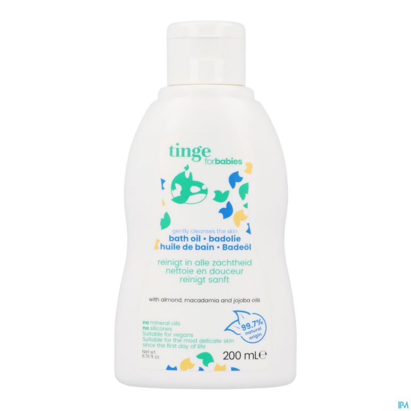 Badolie met plantaardige oliën die de babyhuid verzachten en de huidbarrière versterken met amandelolie, macademia olie en jojobaolie. 99,7% ingrediënten van natuurlijke oorsprong.