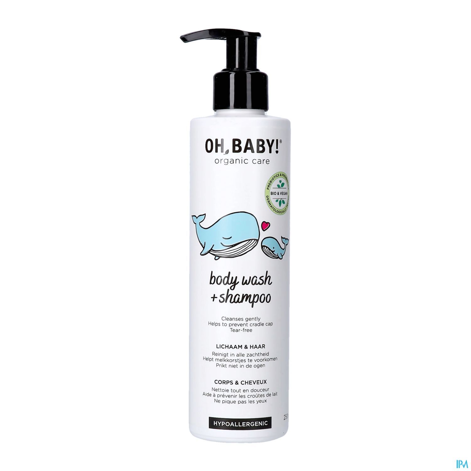 Dankzij de rijke mix van thermaal water en aloë vera extract reinigt, voedt en verzacht onze zeepvrije, biologische en vegan Body Wash & Shampoo het lichaam en het haar van je baby. Oh, Baby! Body Wash & Shampoo bevat ook prebiotica en probiotica die de natuurlijke beschermlaag van je baby's huid en haar versterken en herstellen.