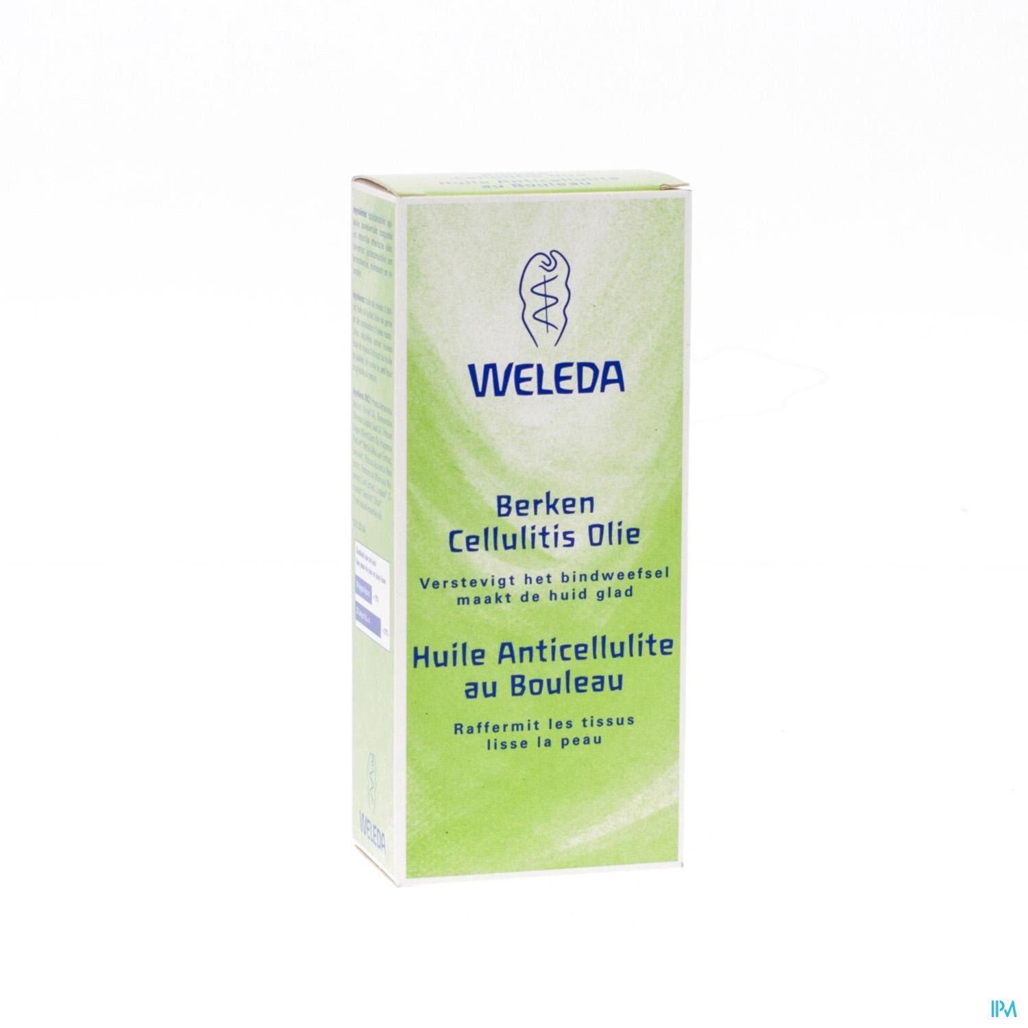 Berken Cellulitisolie bevat een uitgekiende combinatie van actieve plantenextracten die de vetafbraak in de onderste huidlagen stimuleren en de afvoer van afvalstoffen en vocht activeren. De tarwekiemolie en het olie-extract van rozemarijn bevorderen de doorbloeding en ondersteunen het herstellend vermogen van de huid en het bindweefsel.