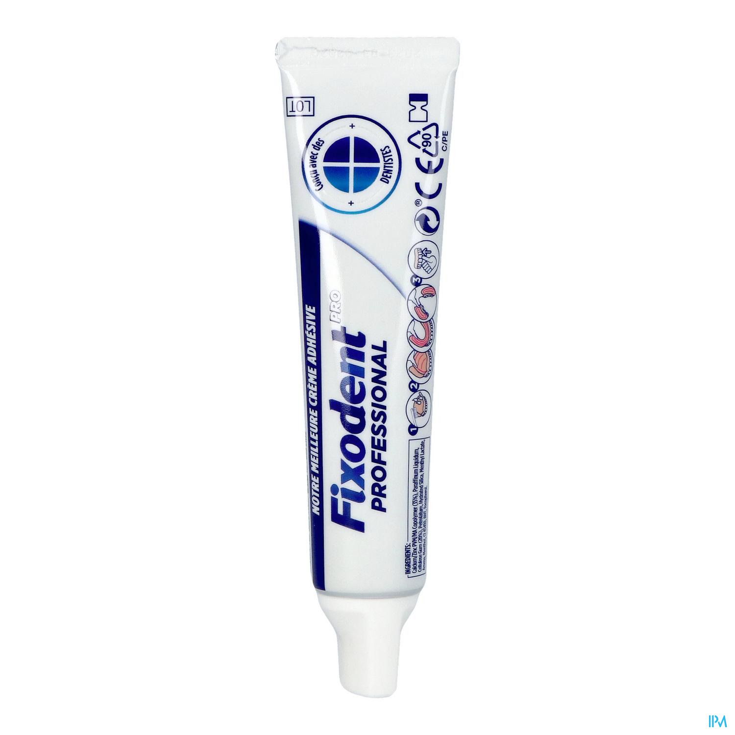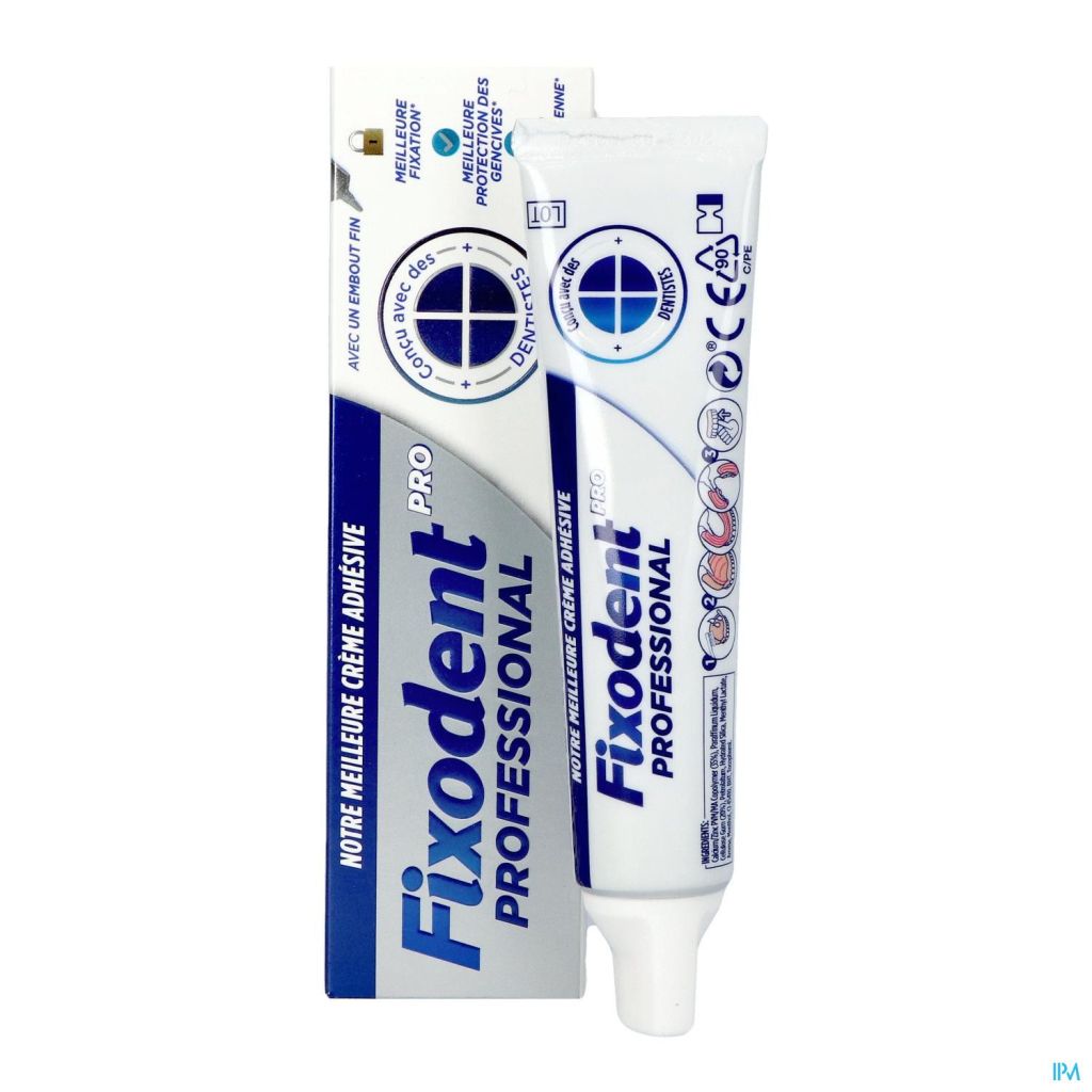 Fixodent Pro Professional is de ultieme kleefpasta binnen het assortiment van Fixodent. Het vermindert het bewegen en de wrijving van kunstgebitten en vormt een betere barrière tussen uw kunstgebit en uw tandvlees in vergelijking met Fixodent Pro Original. Het helpt de groei van bacteriën die een slechte adem veroorzaken af te remmen en is uitgerust met een superdunne doseertuit voor een gemakkelijke en nauwkeurige dosering.
