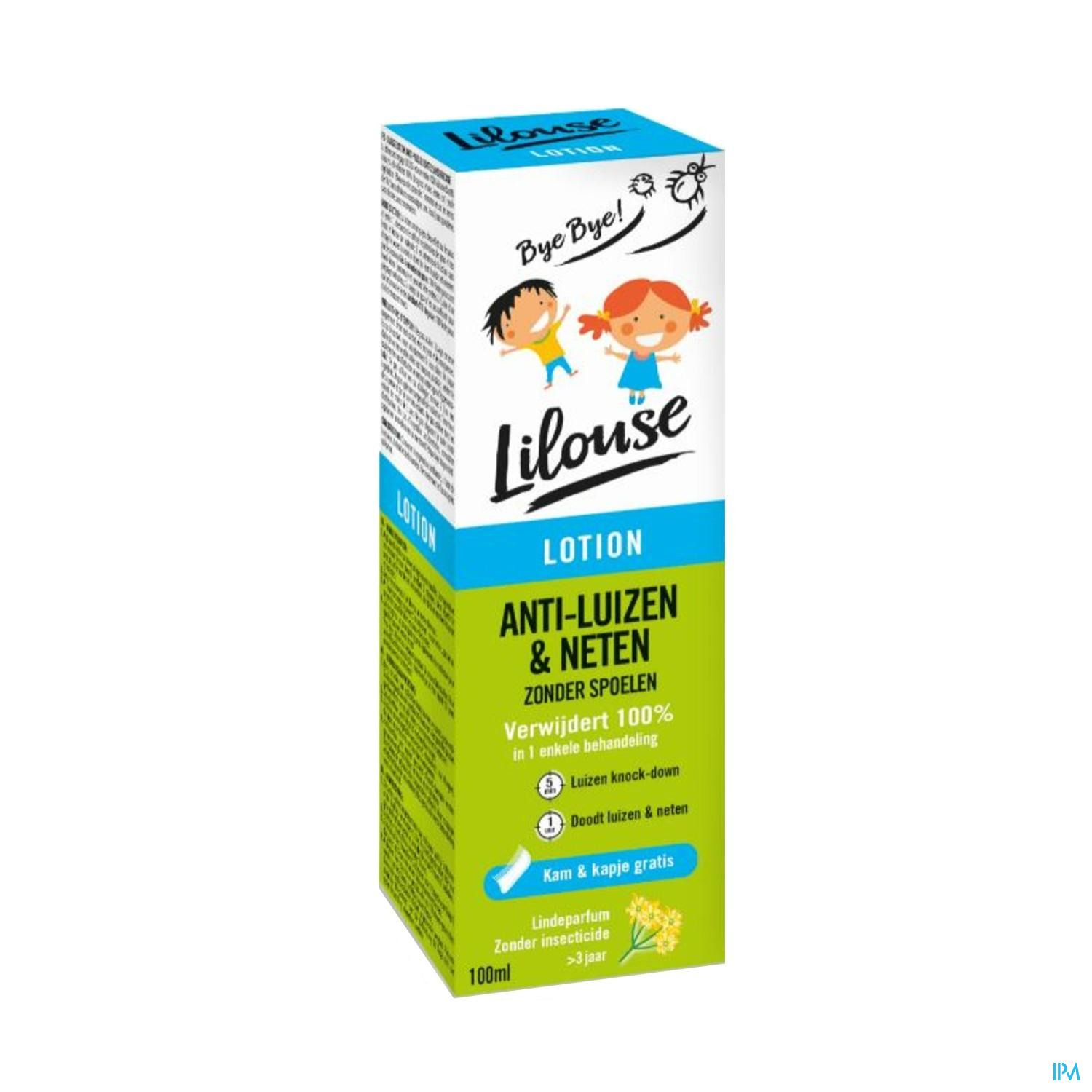 Lilouse lotion zonder spoelen is een product op basis van 100% natuurlijke actieve bestanddelen. Een enkele behandeling verwijdert 100% van de luizen en neten. Na 5 minuten effectief tegen luizen en na 1 uur tegen neten.